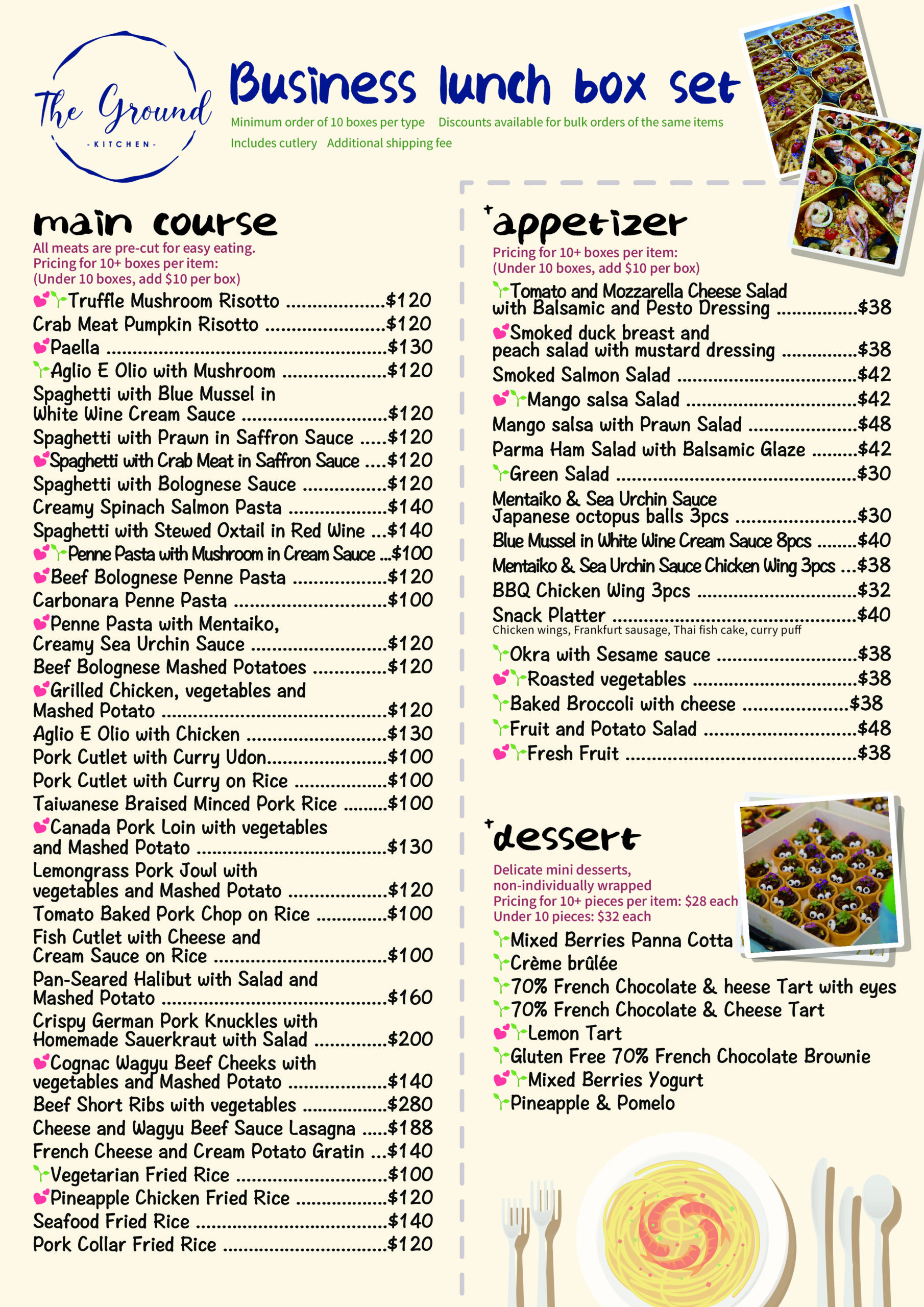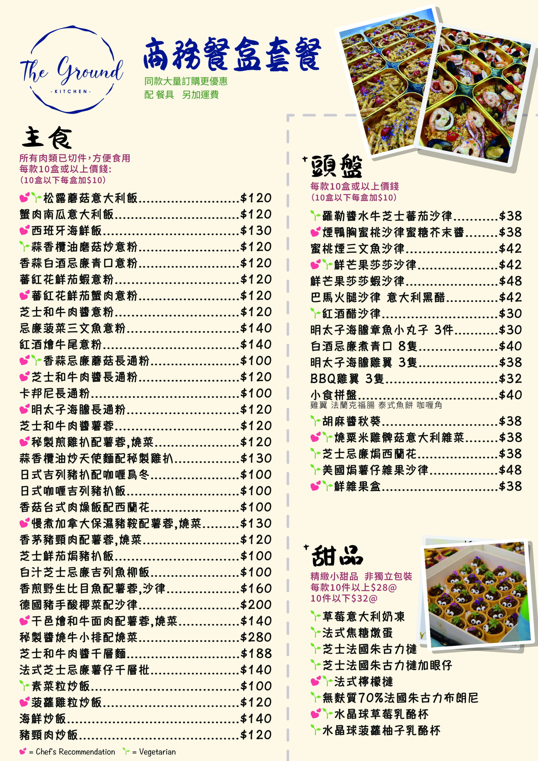 💕= 廚師推介 Chef’s Recommendation 🌱= 素食 Vegetarian